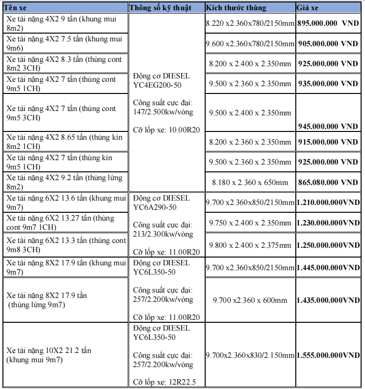 (Gọi ngay hotline bên dưới để biết thêm giá các dòng xe mới)