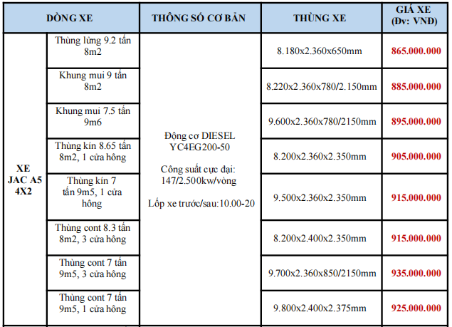 (Gọi ngay hotline bên dưới để biết giá các dòng xe tải JAC mới)