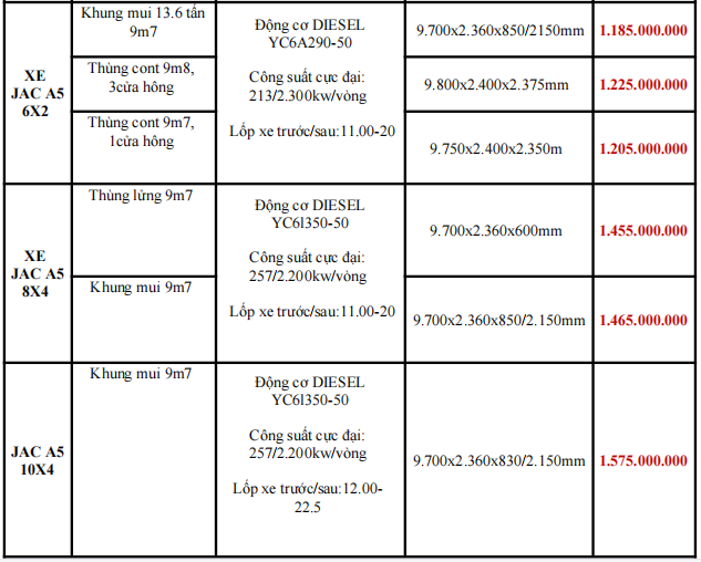 3. BẢNG GIÁ XE TẢI JAC HẠNG NẶNG
