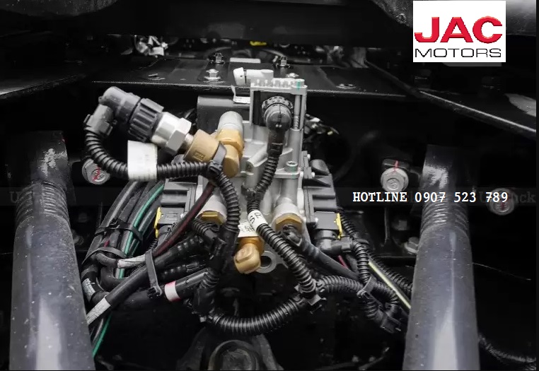 - Xe đầu kéo Jac Q7 còn có bình Ure 60 lít, thùng nhiên liệu 800 lít làm từ hợp kim nhôm, hệ thống phanh ABS, hệ thống cân bằng điện tử ESC, hệ thống xử lí khí thải Euro 5.
