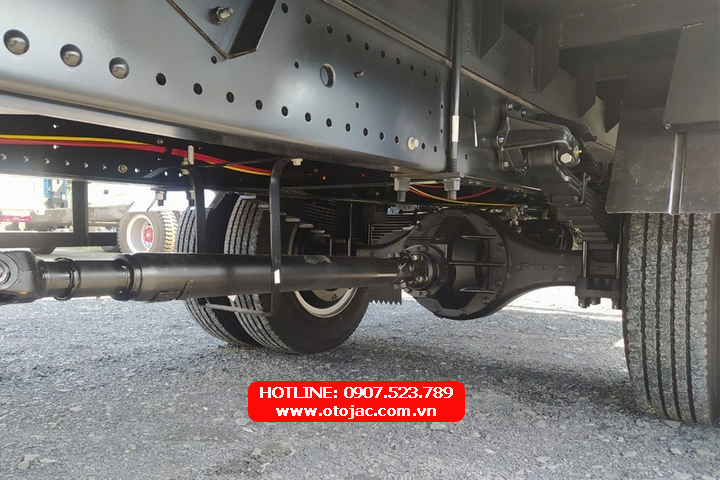 Khung gầm và hệ thống treo: Khung gầm chassis được thiết kế 2 lớp với công nghệ sơn tĩnh điện, tăng cường độ bền và khả năng chống gỉ sét. Cầu trước chữ I chịu tải 5.500 kg và cầu sau chịu tải 10.000 kg đảm bảo khả năng vận chuyển hàng hóa nặng. Hệ thống treo nhíp lá bán nguyệt kết hợp giảm chấn thủy lực giúp xe vận hành êm ái và ổn định trên nhiều địa hình.